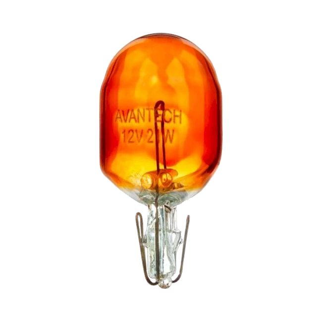 Лампа дополнительного освещения Avantech WY21W orange 12V — дополнительного света не имеет цоколя, применяется для указателей поворотов любых автомобилей. Лампа устойчива к частому включению и выключению, а также к вибрациям. Одна нить накаливания с максимальной мощностью 21Вт рассчитана на подключение к бортовой сети с напряжением 12В.