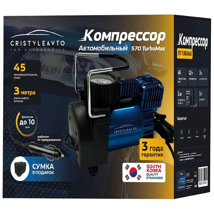 Компактные размеры и легкий вес, делают его удобным для переноски и хранения в автомобиле. Удобная рукоятка на корпусе обеспечивает легкость переноски насоса. Прорезиненные ножки гарантируют устойчивость компрессора на любой ровной поверхности. Насос для автомобиля снабжен предохранителем, защищающим от перегрева, что обеспечивает безопасную и надежную работу, увеличивая срок службы. Компрессор с медной обмоткой отличается прочностью, эффективной работой и улучшенным теплоотводом. Он собран из качественных комплектующих, имеет металлический корпус и упакован в удобную сумку, что позволяет хранить его в багажнике или в салоне автомобиля. Встроенный манометр точно отображает текущее давление в шинах. Быстро и легко накачать мяч, матрас и тд. благодаря насадкам, включенным в комплект.